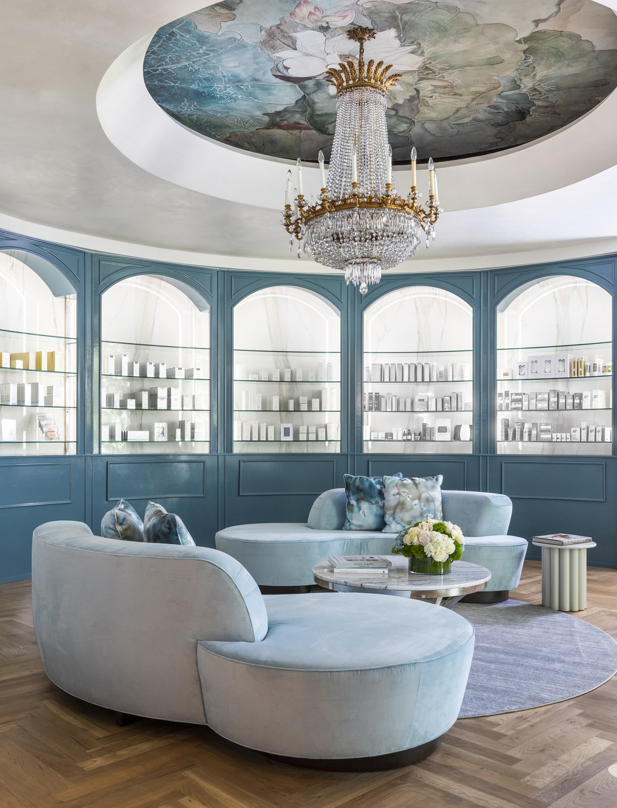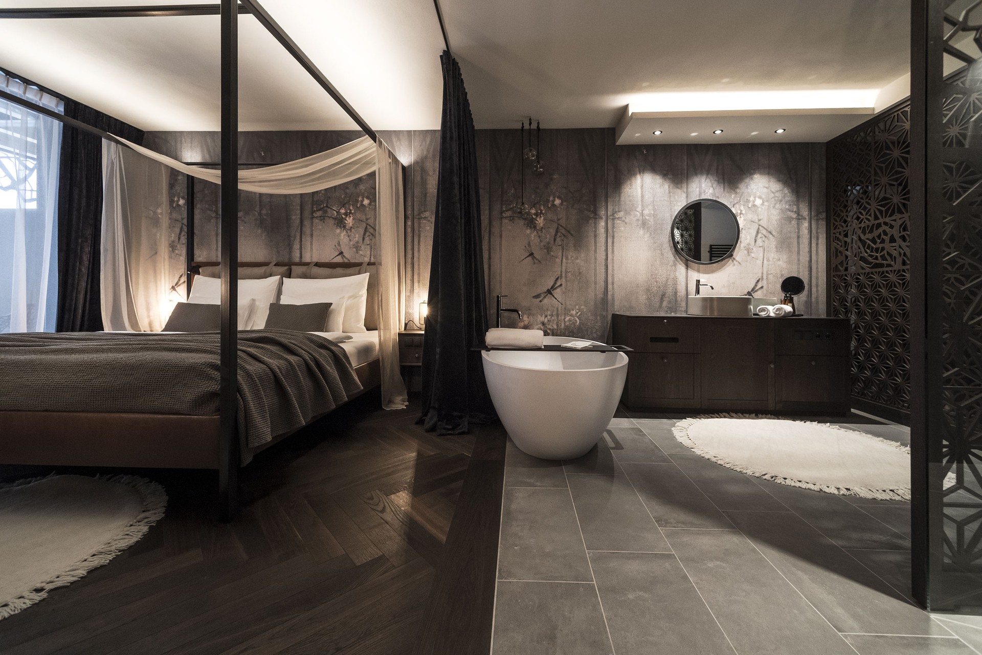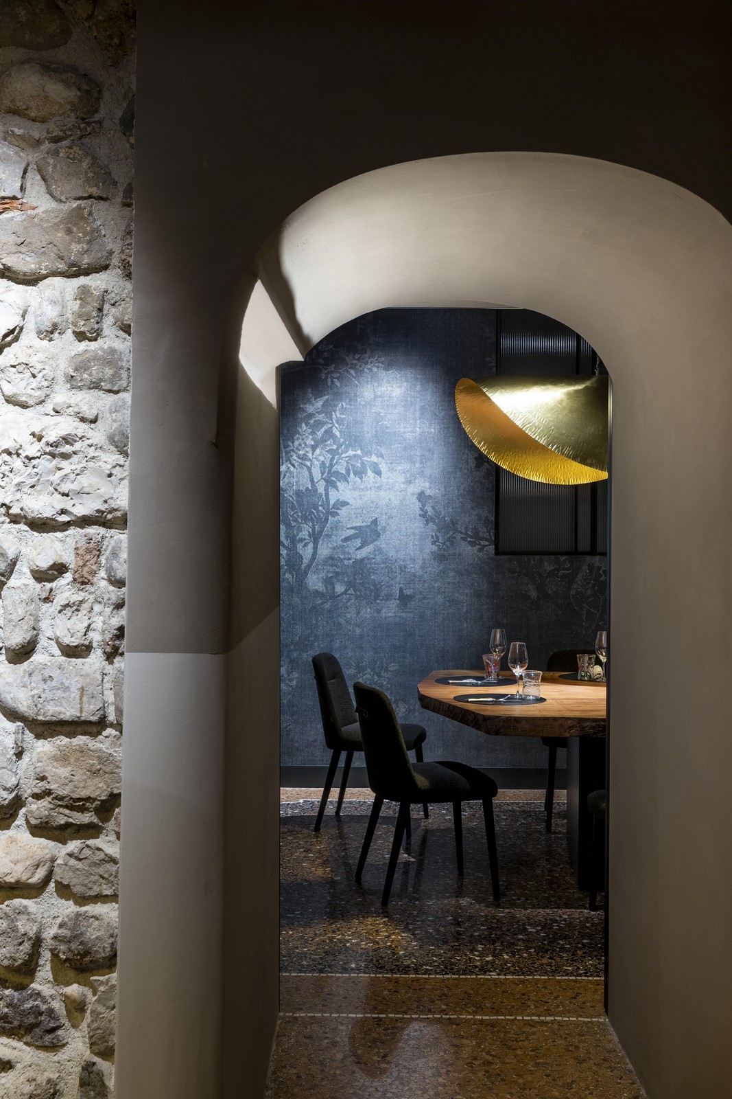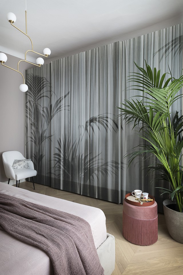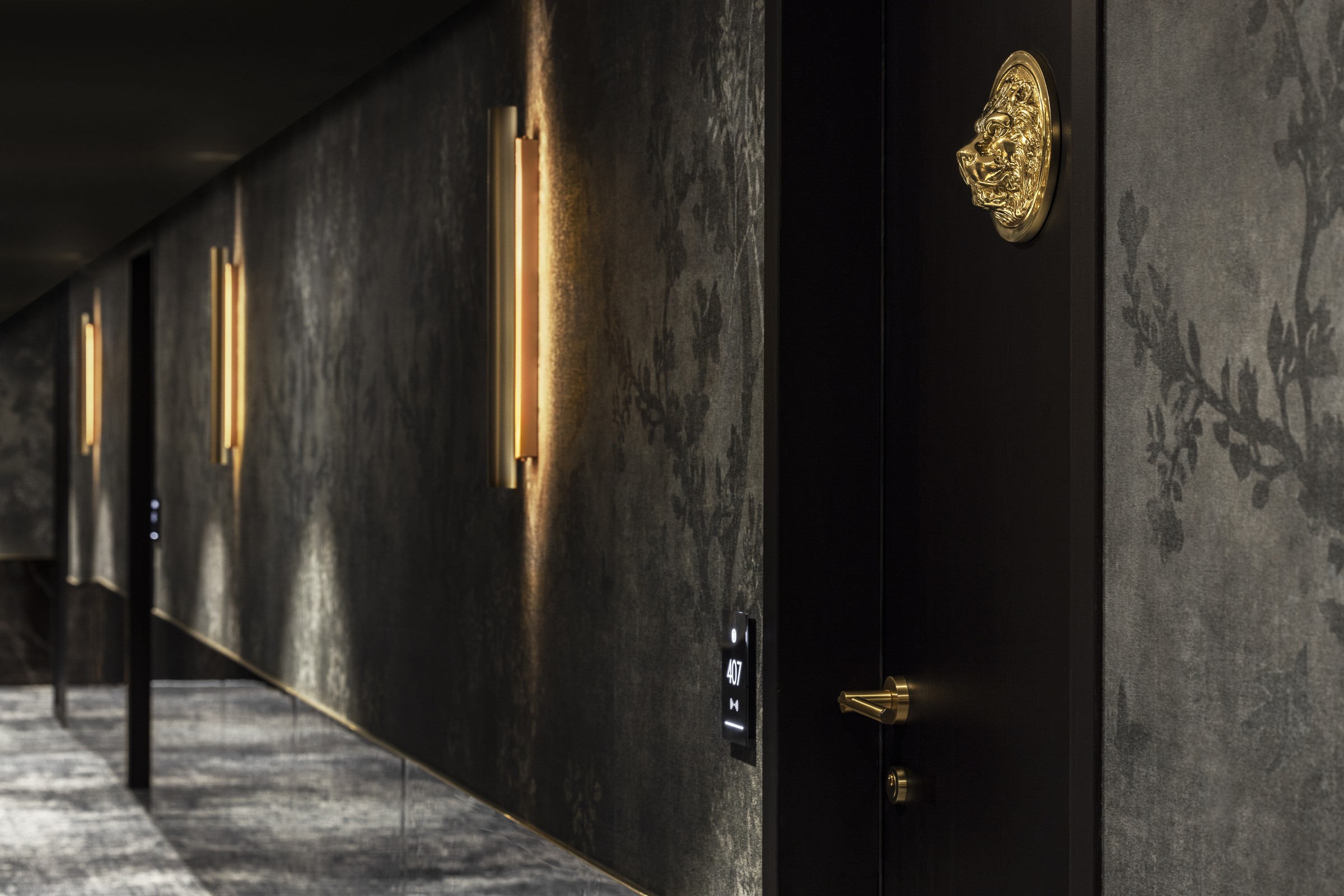 La carta da parati ‘Delove’ di Maria Gomez Garcia rappresenta due grandi volti, uno maschile e uno femminile: posizionati di spalle tra loro, sono in totale fusione con il fondo di foglie e fiori, in un’atmosfera enigmatica e al tempo stesso avvolgente.