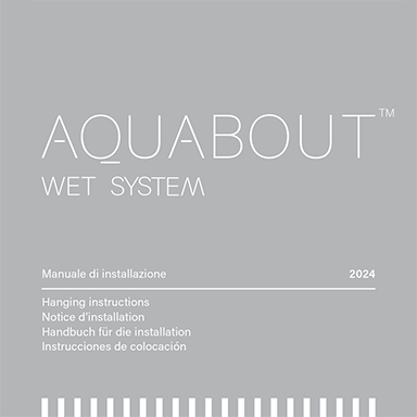 AQUABOUT WET SYSTEM™ brings the innovation to the next level. The water-based resins used in the new system ensure a lower environmental impact - a high-performance and sustainable solution for residential, hospitality and commercial.The new water-based system simplifies the installation process within 36/48 hours. It also allows the re-use of tools and does not require any installation licence. AQUABOUT WET SYSTEM™ guarantees a long term reliability. Total watertightness, excellent resistance to cracking, as well as high washability performance, resistance to detergents, impacts and scratches, while complying with current fire resistance regulations. AQUABOUT WET SYSTEM™ is a true wall covering system, consisting of various components - primer, specific glue, fibreglass fabric and protective finish - a total thickness of only 1.5 mm: this allows a fast renovation with limited site residues on pre-existing surfaces, such as bathroom and kitchen tiles.
